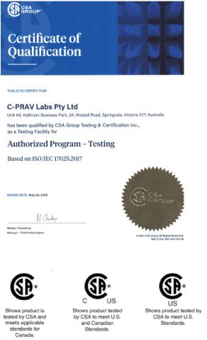 We are proud to announce that C-PRAV Labs is now the first Australian laboratory to be authorised by CSA Group for conducting electrical safety testing for products entering the North American market (U.S. and Canada).